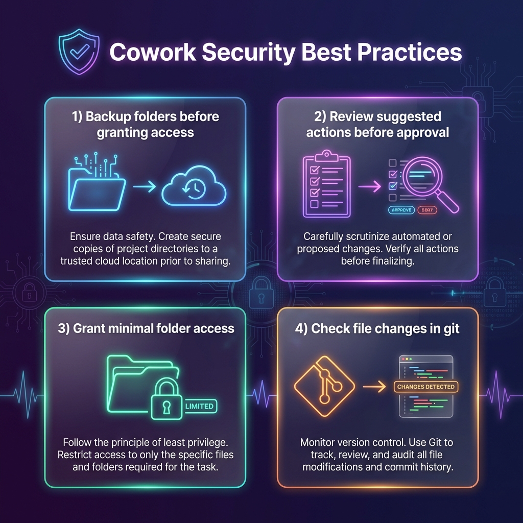 The combination of Cowork's built-in protections and your security practices creates a robust defense. By understanding the security model and following best practices, you can safely leverage Cowork's powerful capabilities while protecting your important files.